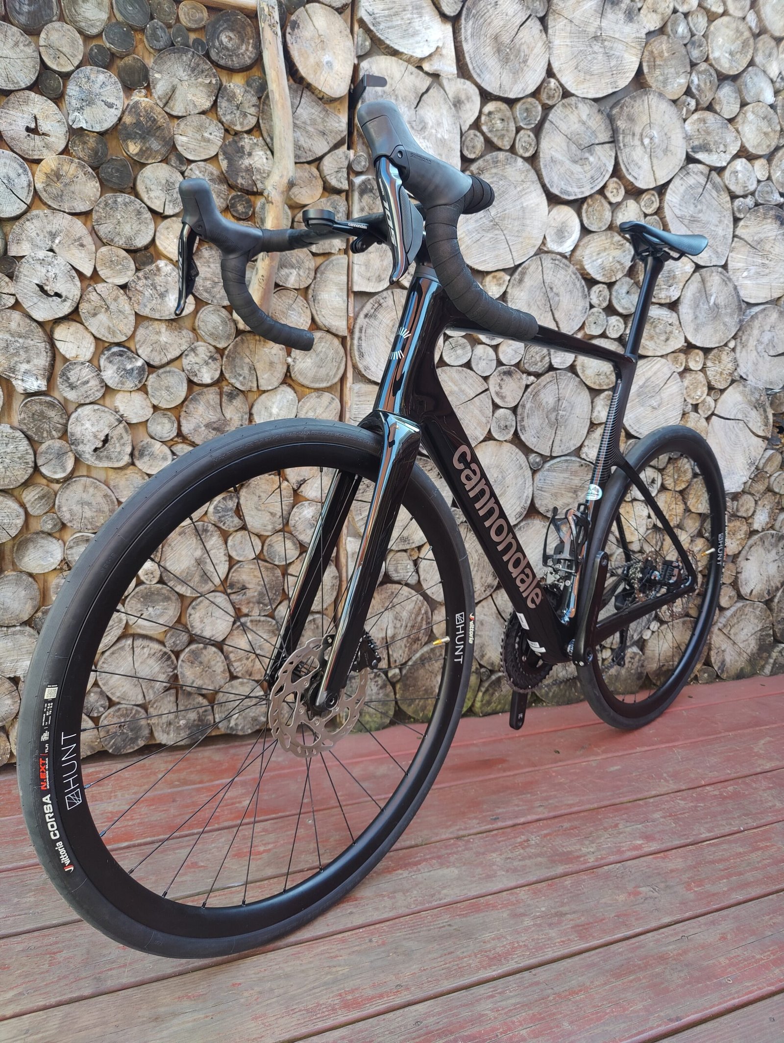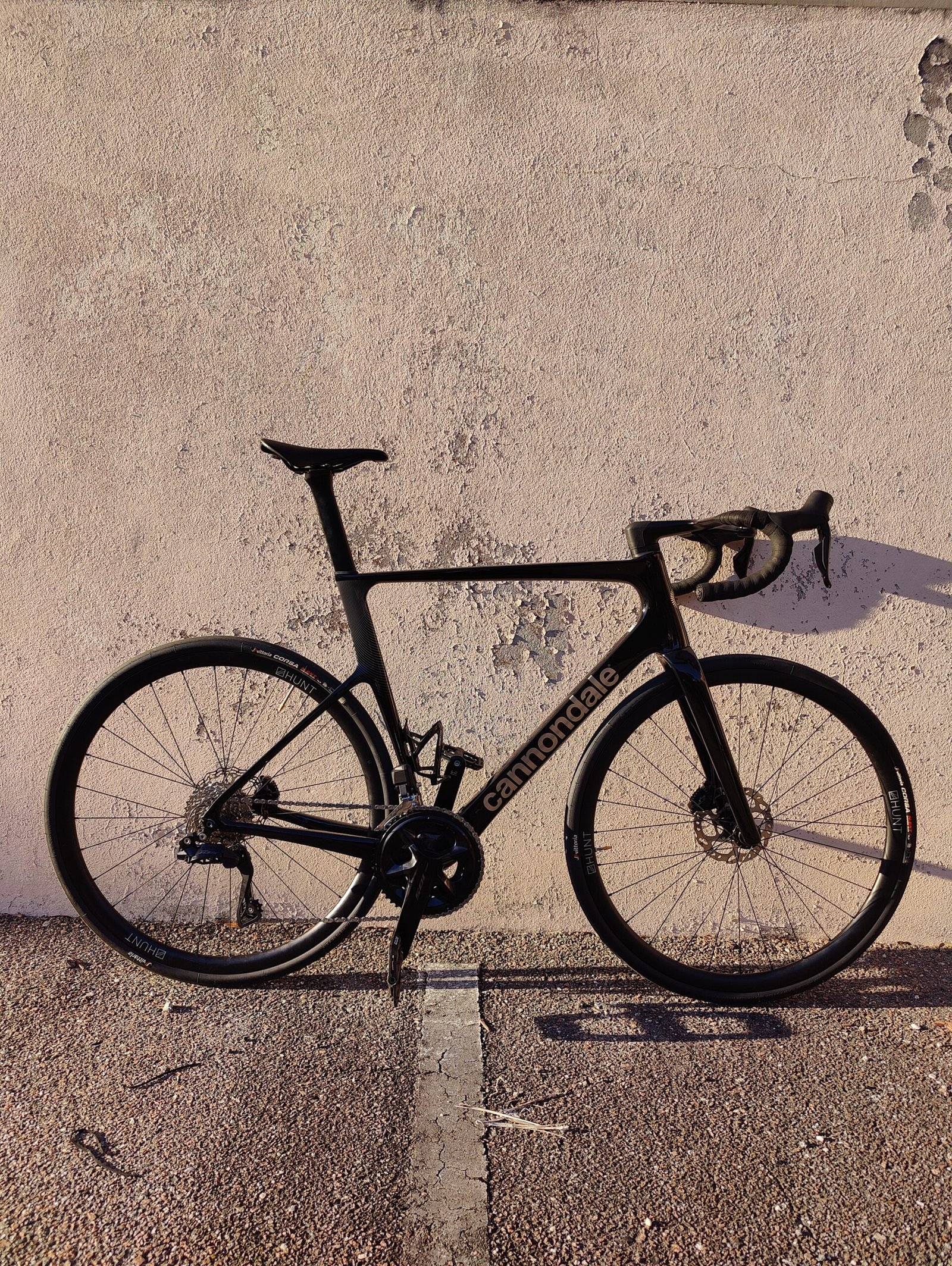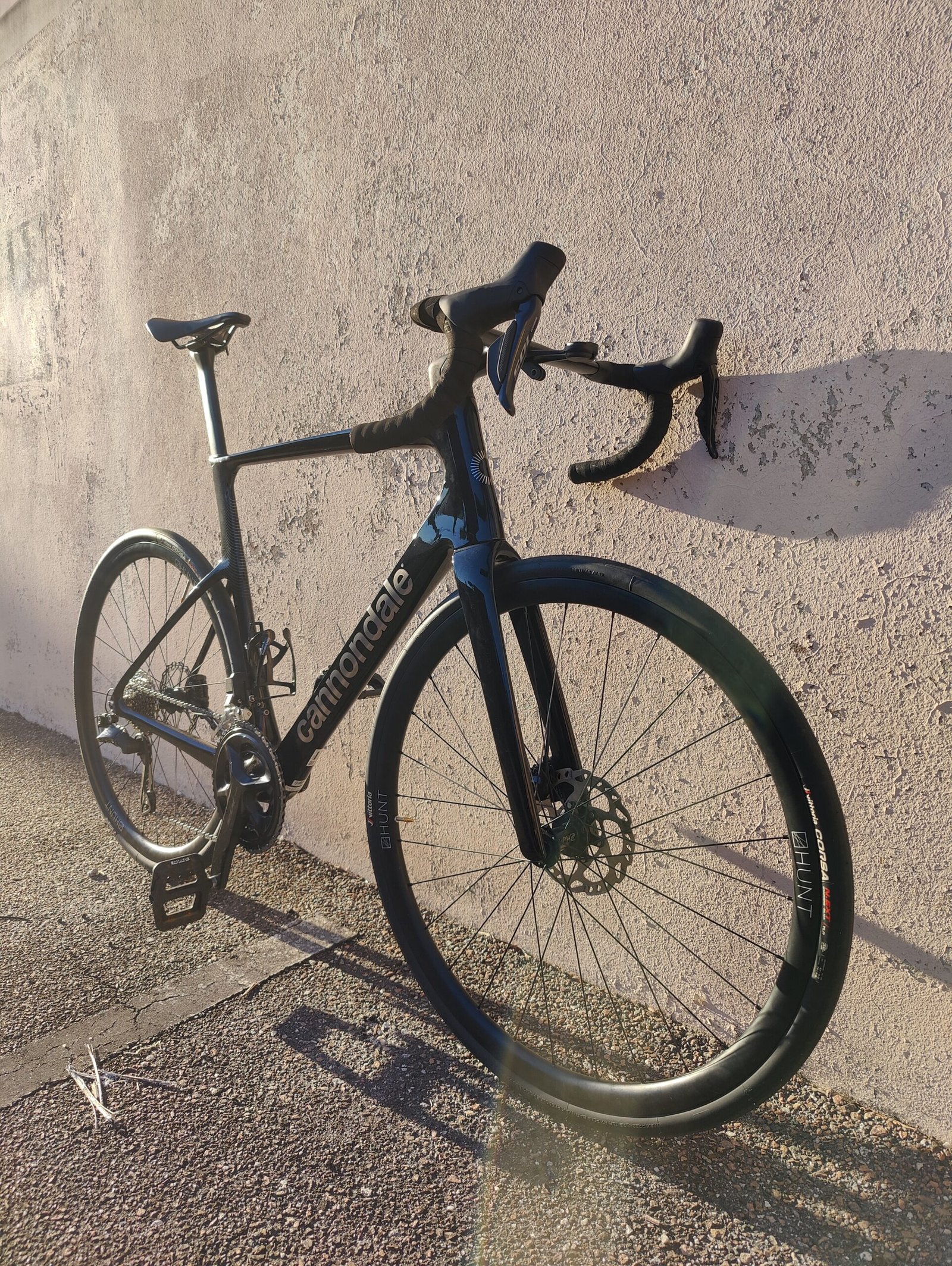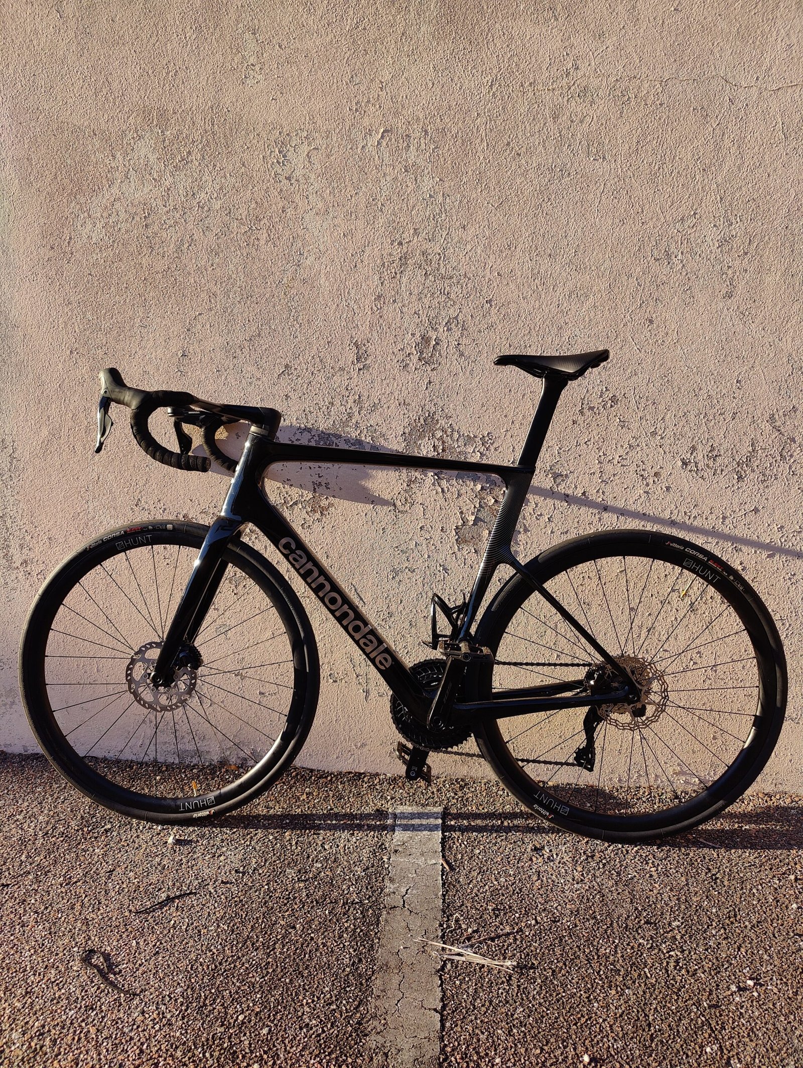 Hunt 30 carbon fiber wheelset wrapped in Vittoria Corsa 32c rubber