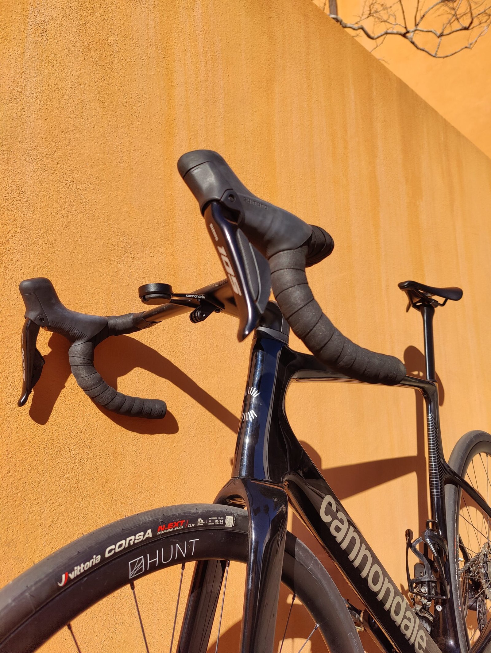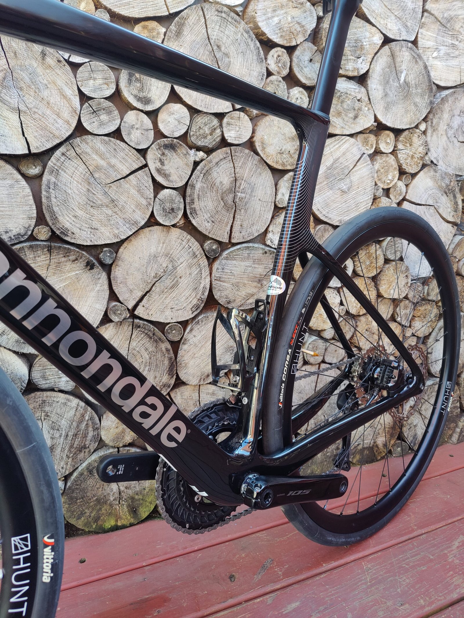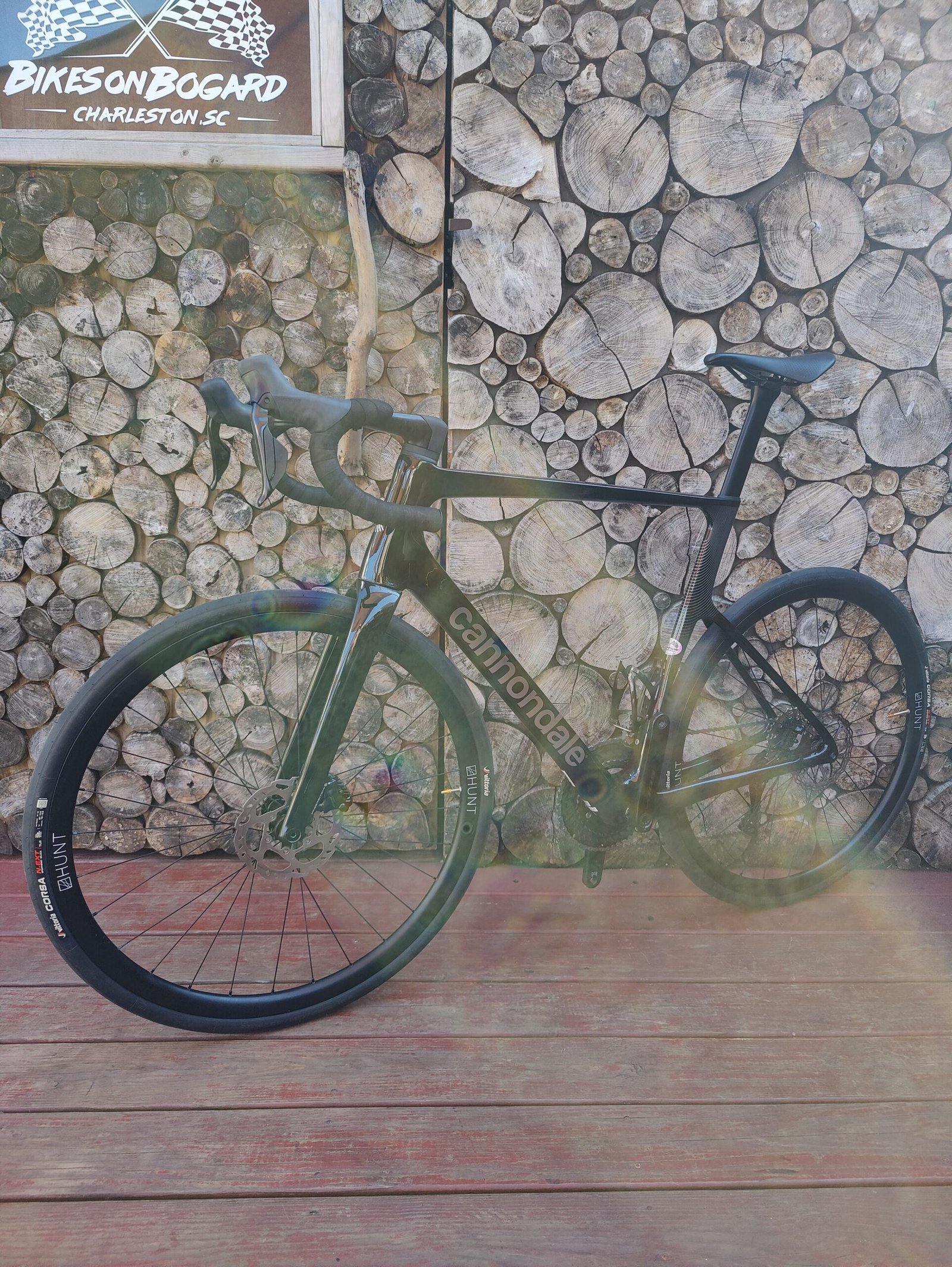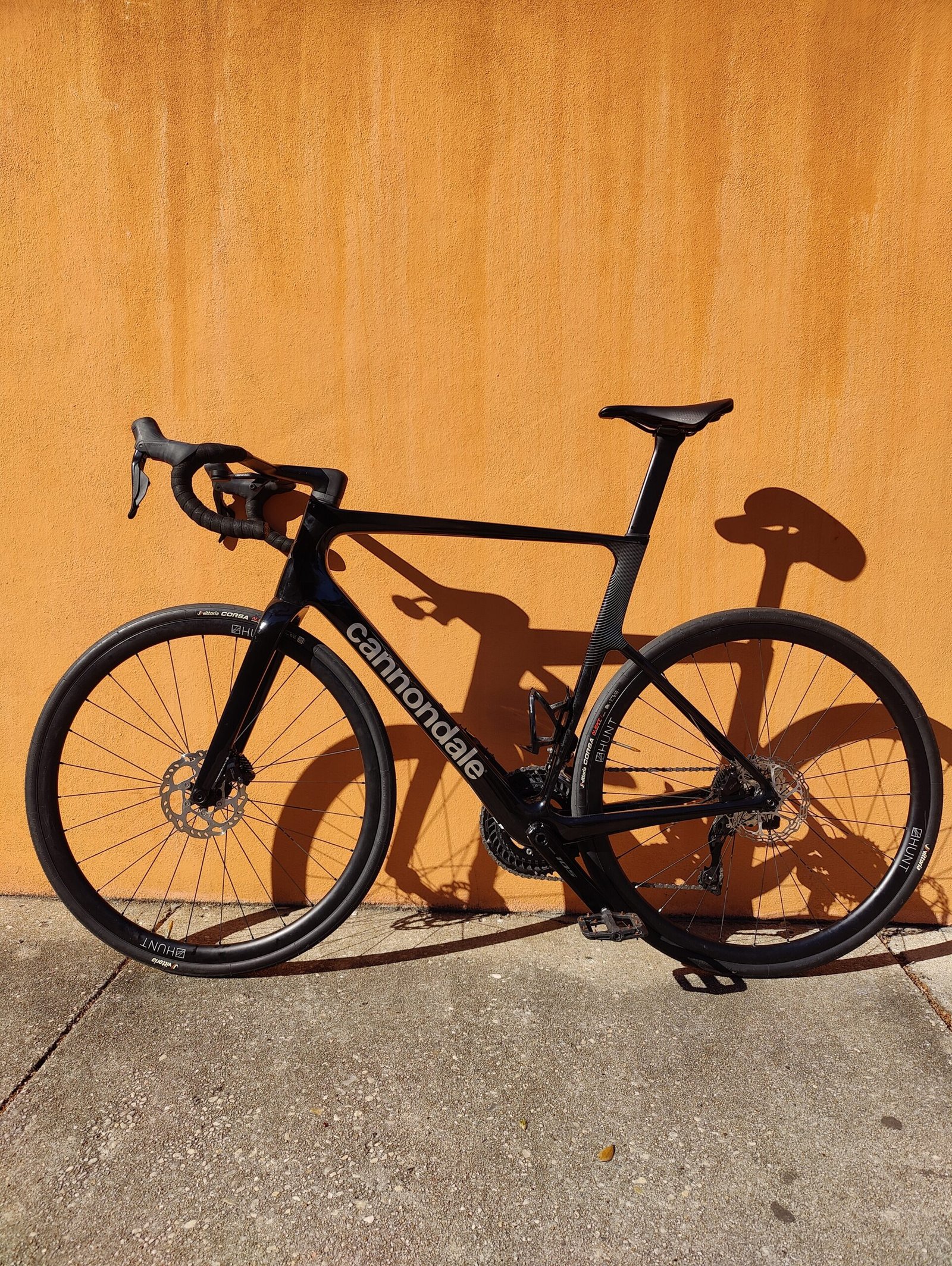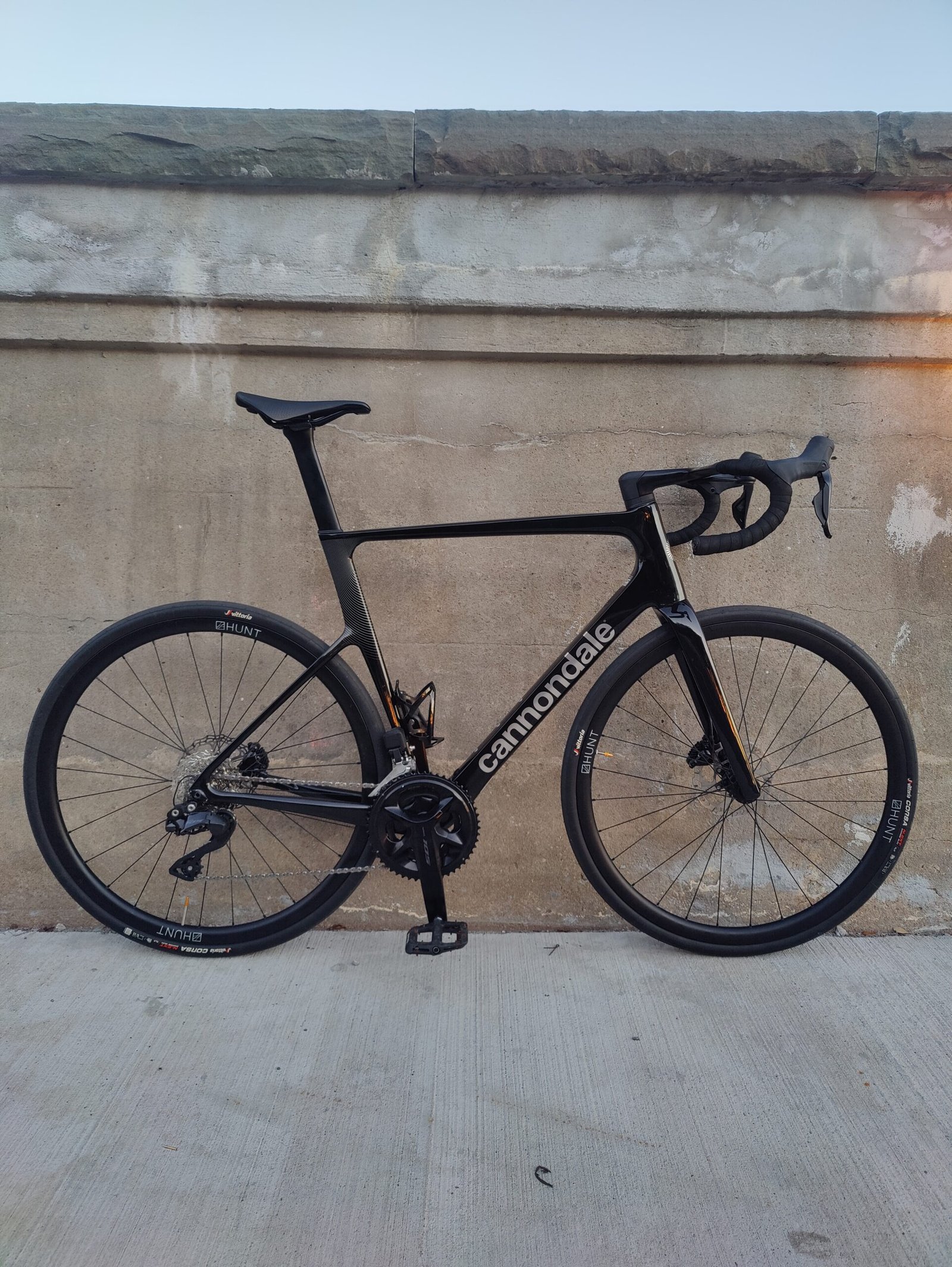 Hunt 30 carbon fiber wheelset wrapped in Vittoria Corsa 32c rubber