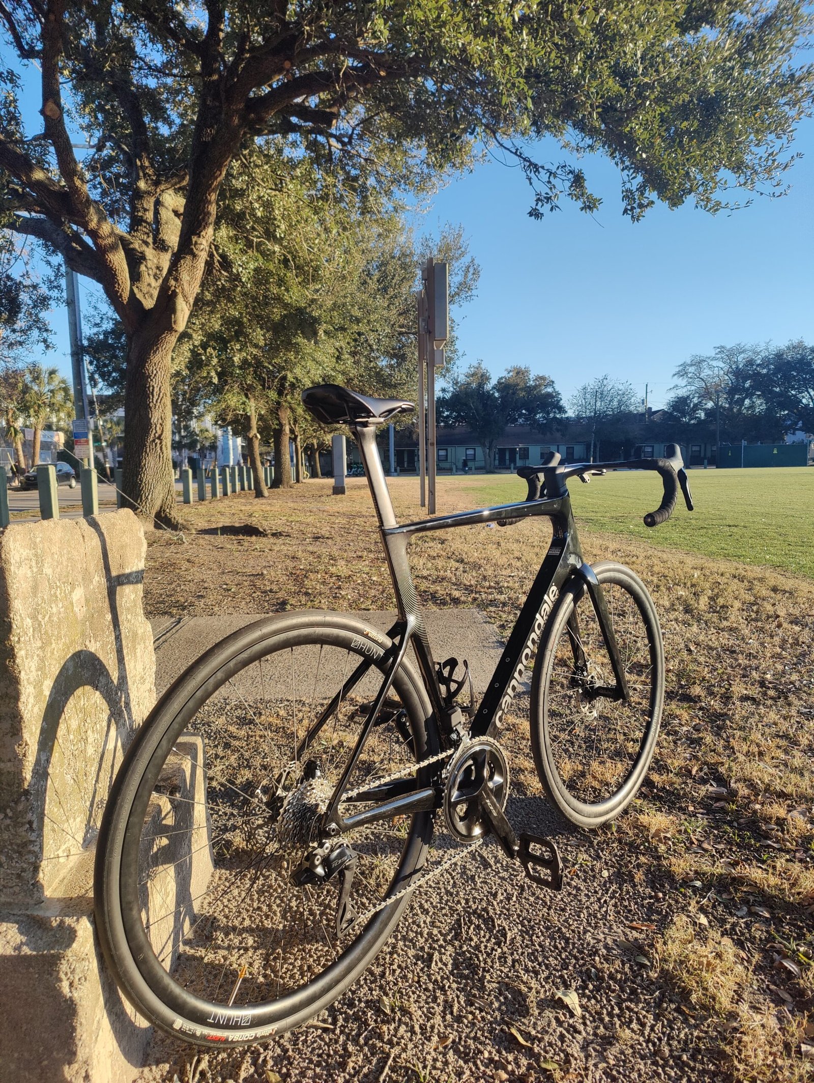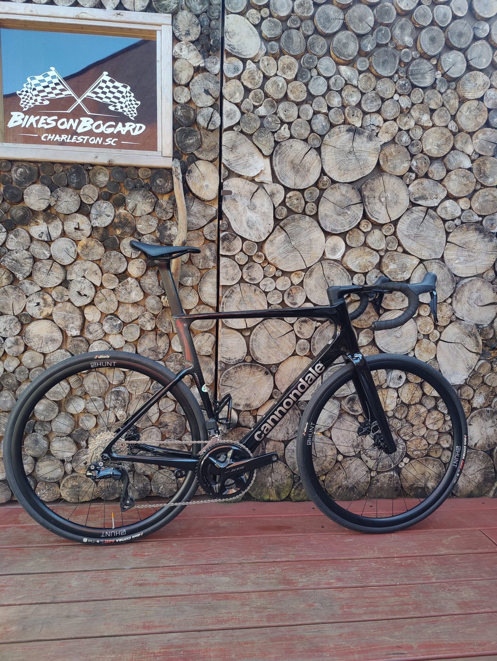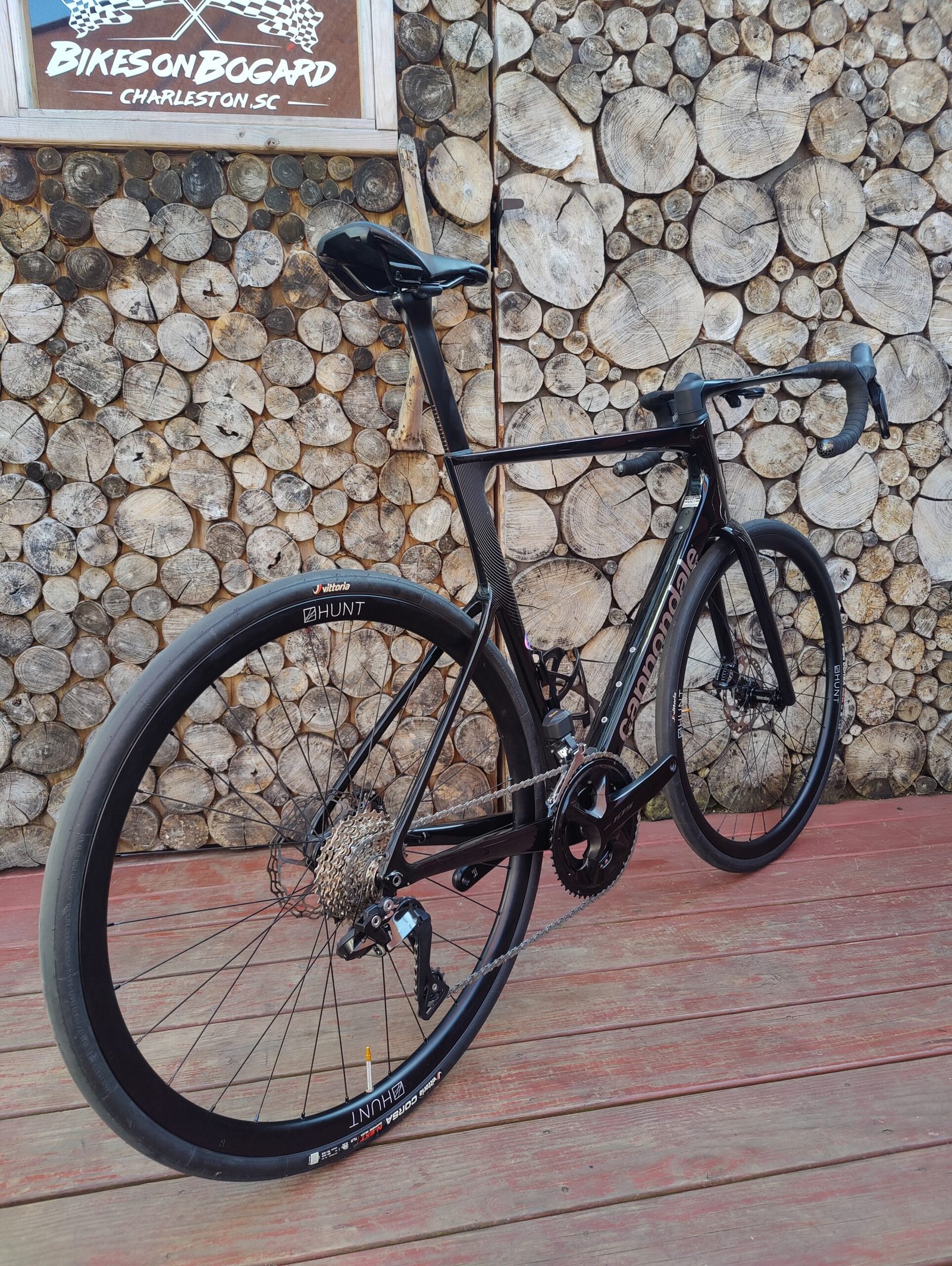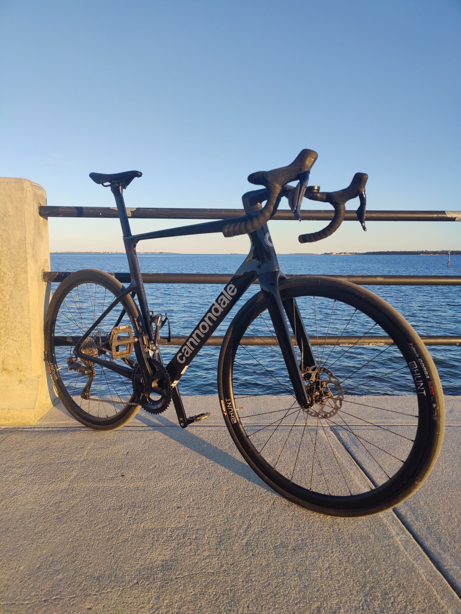 Hunt 30 carbon fiber wheelset wrapped in Vittoria Corsa 32c rubber