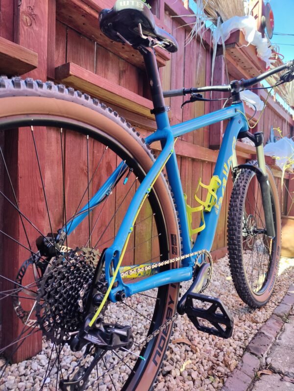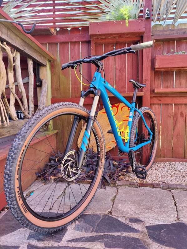 Freshly tubeless Schwalbe Nobby Nick zero miles WTB saddle Crank Bros Stamp 1 pedals Manitou fork Hell’s gate grips