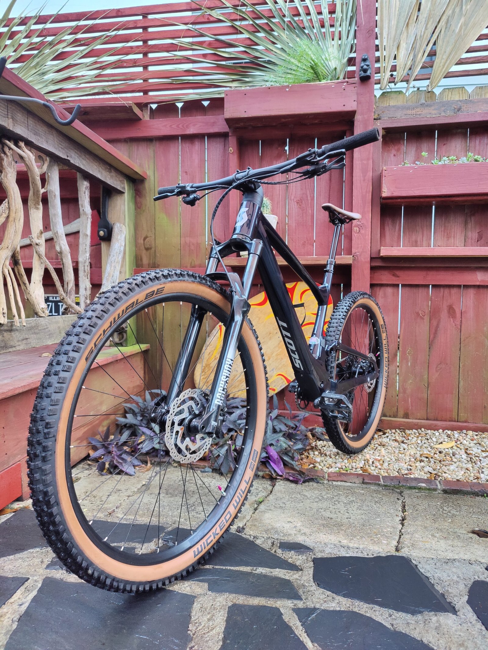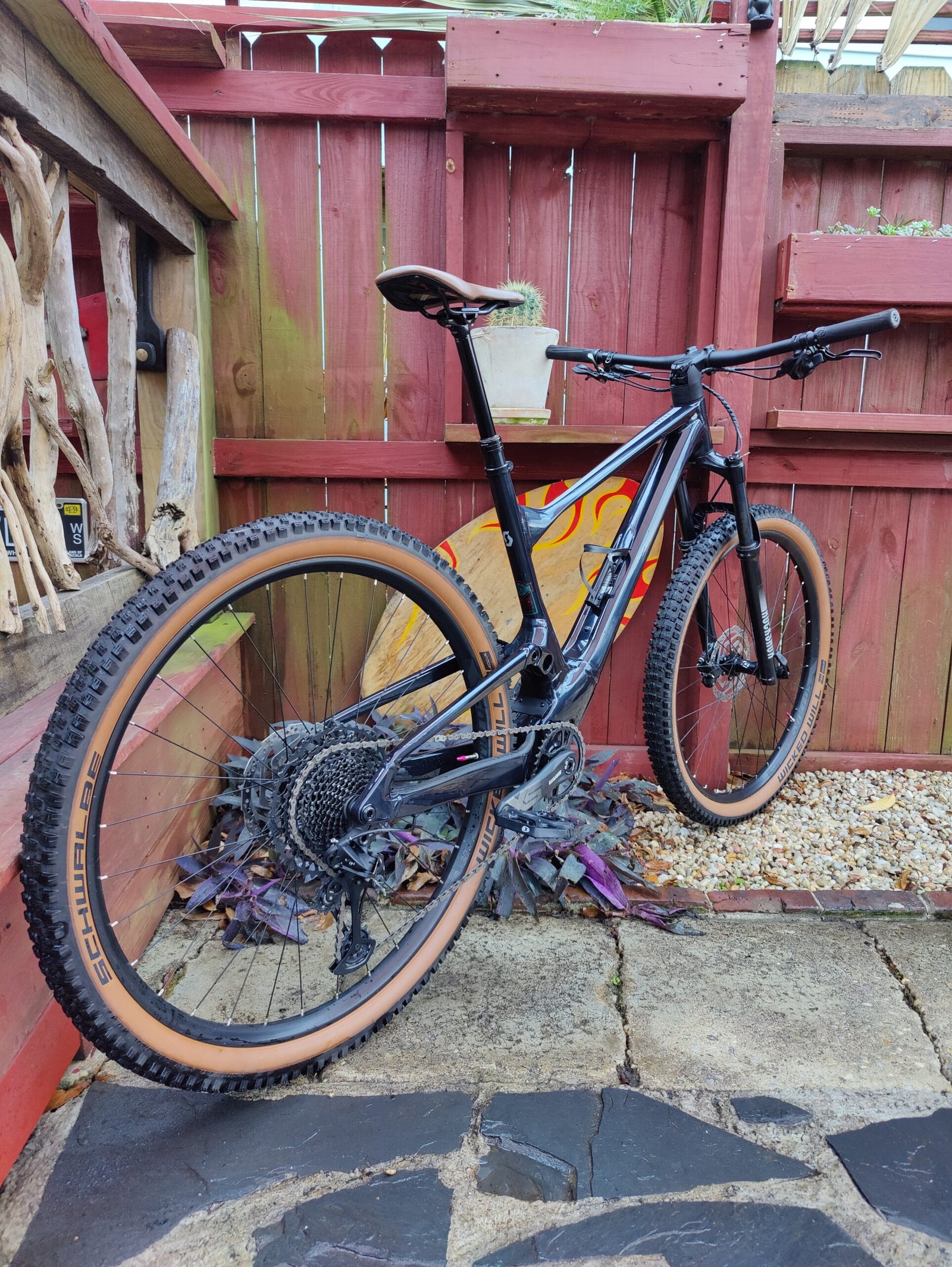 29-inch Syncros X-30SE TR wheels and Schwalbe Wicked Will tires with a 2.4-inch width